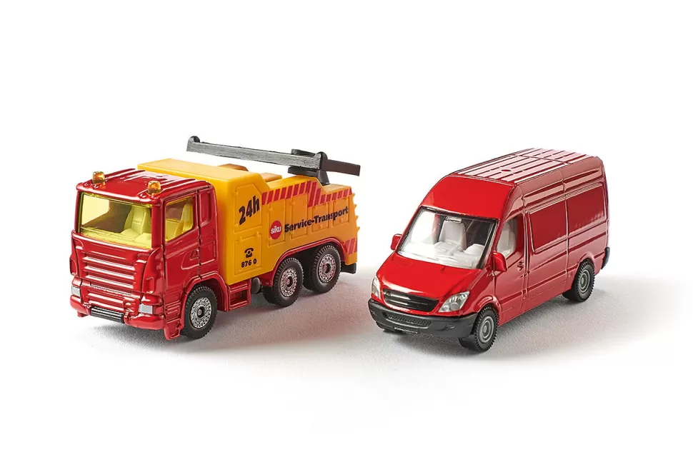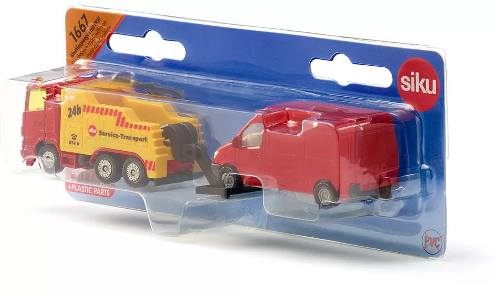 Das ist eine tolle Spielkombination mit vielen Funktionen! Der mächtige dreiachsige Bergungs-Abschlepper zieht auch im kompakten Blisterformat mit kraftvoller Leichtigkeit einen Lieferwagendas Modellduo ist authentisch dem Straßenalltag nachempfunden. Die heckseitige Bergeeinrichtung ist voll beweglich ausgeführt, so dass sich der Abtransport realistisch simulieren lässt. Die Aufnahmevorrichtung in Brillenoptik ist deshalb auch anheb- und absenkbar ausgeführt.