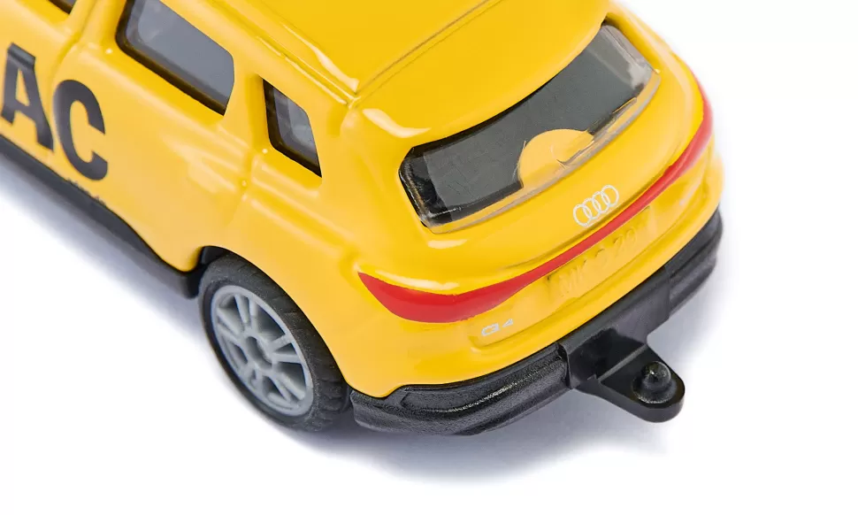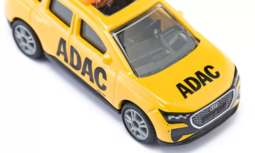 Hat jemand die Pannenhilfe gerufen? Egal ob auf der Autobahn oder in der Stadt mitten im Berufsverkehr: Der ADAC ist sofort zur Stelle und schickt seinen neuen e-Engel zum Einsatzort. Der Audi Q4 e-tron kommt als Modell im originalgetreuen, gelb-schwarzen ADAC-Design inklusive der markanten Schriftzüge und gelben Signalbalken auf dem Dach. Karosserie und Fahrgestell sind aus robustem Metall bzw. Kunststoff, die klare Verglasung gewährt außerdem einen Blick ins Wageninnere. Wir müssen das Unfallfahrzeug abschleppen? Kein Problem: Schnell ist ein Anhänger an die serienmäßig integrierte Anhängerkupplung des Audi Q4 e-tron montiert und das Pannenfahrzeug kann verladen werden. Die sportlichen, silbernen Felgen mit der gummierten Lauffläche machen dieses Pannenfahrzeug außerdem zu einem schnittigen Hingucker.
