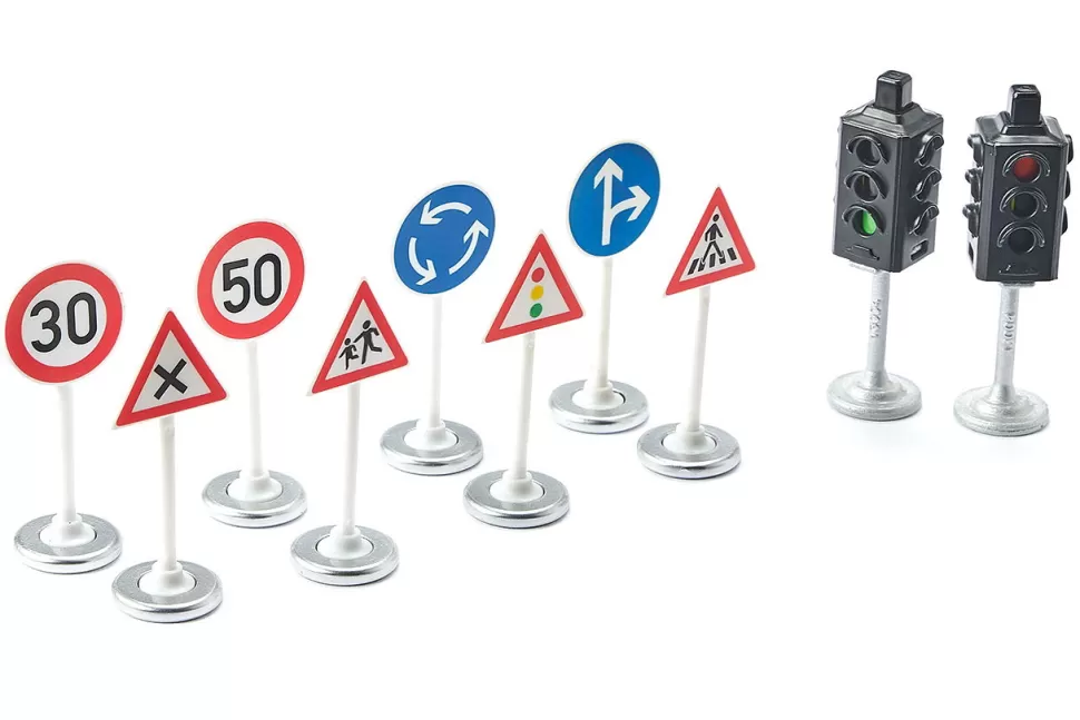 Zubehörset für die SIKUWorld. 2 Ampeln und 8 Verkehrszeichen zum weiteren Ausbau der Stadt.