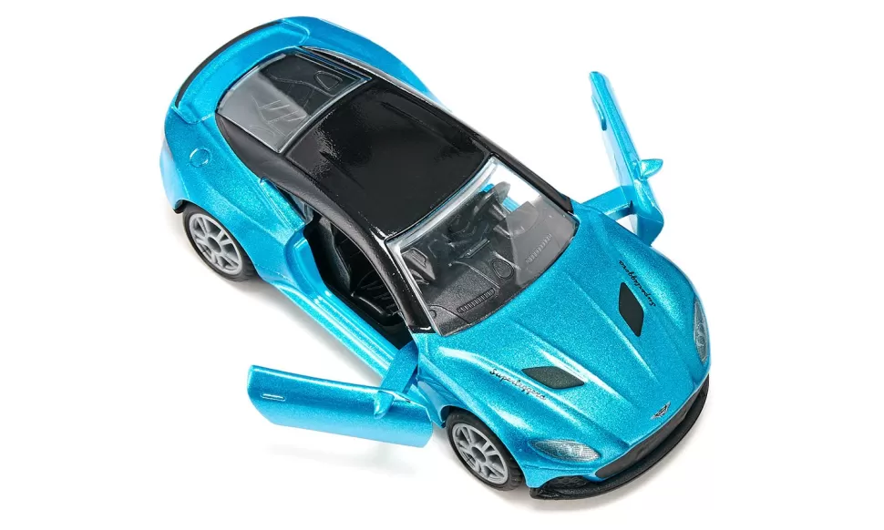 Der britische Geheimagent 007 liebt die legendären britischen Luxussportwagen von Aston Martin, die auf einzigartige Weise Eleganz und Sportlichkeit miteinander kombinieren. Das Spitzenmodell DBS Superleggera des britischen Sportwagenherstellers kommt mit einem V12-Motor ausgestattet und über 700 PS daher. Durch seine Metallkarosserie mit Türen zum Öffnen, Sportfelgen mit Gummireifen und in der Farbe Iceblue versprüht der Flitzer einen Hauch britischer Noblesse im Kinderzimmer.