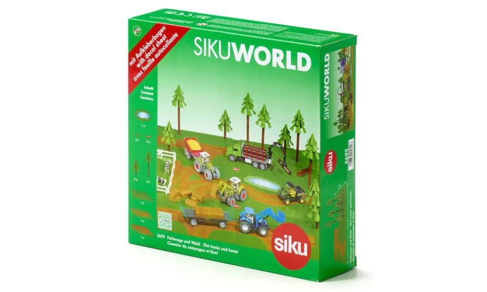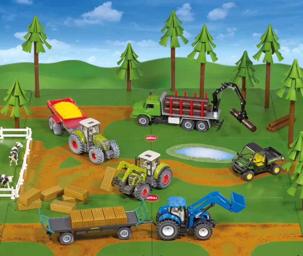 Diese Ergänzung zum Themenbereich der SIKUWORLD-Farm beinhaltet einen Feldweg mit Pfütze, eine Kurve mit Abstellbereich sowie eine Lochplatte mit Bäumen. Die Platten sind in grün gehalten und fügen sich in den Farm-Bereich der SIKUWORLD flexibel ein.