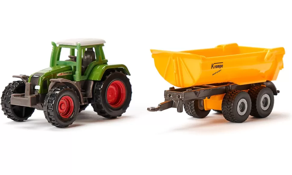 Power-Duo aus Traktor und Krampe Muldenkipper – 260 PS geballte Pferdestärken machen den 926 Vario zum Superstar unter den Traktoren. Als Power-Duo mit dem Krampe Muldenkipper meistert der Traktor mit der berühmten viereckigen Haube alle Aufgaben auf Feldern und Wiesen mit Leichtigkeit und darf auch im Farm-(Spiel)alltag nicht fehlen. Traktor und Anhänger sind als siku-Modelle aus Metall und Kunststoff gefertigt und gleichen dem Original bis aufs kleinste Detail. Leichtlaufräder lassen den 926 Vario auch mit schwerer Ladung mühelos fahren. Der Anhänger mit Tandemfahrgestell ist im Nu an die Anhängerkupplung des Vario gekoppelt – und schon kann es losgehen. Die abnehmbare Kabine und kippbare Mulde mit beweglicher Klappe sorgen für noch mehr Spielspaß.
