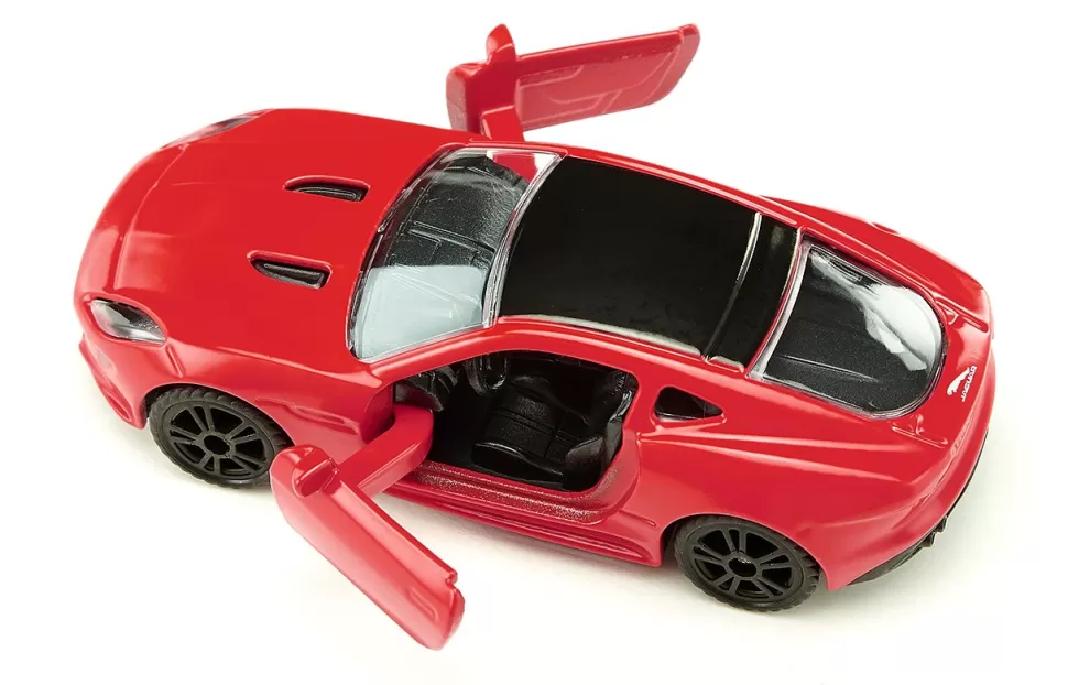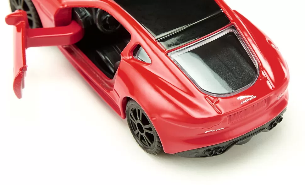 Der V8-Motor mit 5 Liter Hubraum bringt 550 PS auf die Hinterachse. Dieser Jaguar faucht nicht, sondern brüllt seine Leistung heraus: Der F-Type R rennt auf den schwarz lackierten Sportfelgen und mit den gummierten Niederquerschnittreifen in 4,1 Sekunden auf 100 km/h und ist bis zu 300 km/h schnell. Die in der Miniatur eingesetzten Schweinwerfer geben schon das Signal für den nächste Sprint. Die breiten Türen laden zum Einsteigen ein – und los geht‘s.