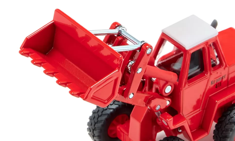Ein Radlader ist vielseitig einsetzbar: Erde bewegen, Schutt schaufeln, Rohre oder Steinplatten transportieren. Ob auf der Baustelle, in der Kiesgrube oder auf dem Bauernhof – die kompakte Baumaschine ist in vielen Bereichen ein unverzichtbarer Helfer. Einer der führenden Hersteller in diesem Bereich ist die Marke Kramer, die vor knapp 100 Jahren in einer schwäbischen Kleinstadt in der Nähe des Bodensees gegründet wurde. Kramer produziert extrem wendige, geländegängige und hoch effiziente Radlader. Dazu zählt auch das historische Modell 411, das mittlerweile als Radlader-Oldtimer zum echten Liebhaberstück geworden ist. Als siku-Modell kommt der historische Kramer Radlader mit roter Metallkarosserie und originalgetreuen Felgen daher. Ladearm und Schaufel sind beweglich, durch die vier Reifen mit grobstolligem Bauprofil ist er für alle Einsätze gerüstet.