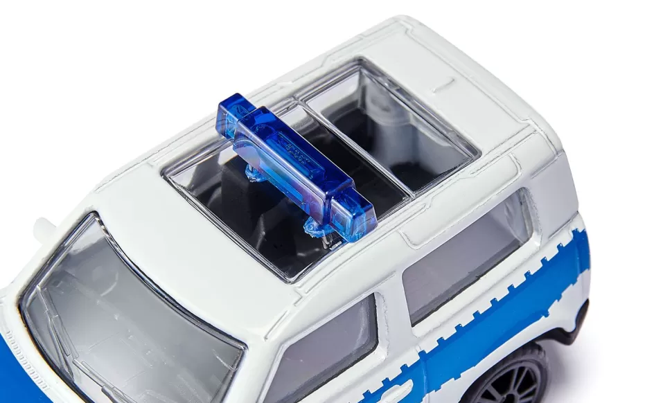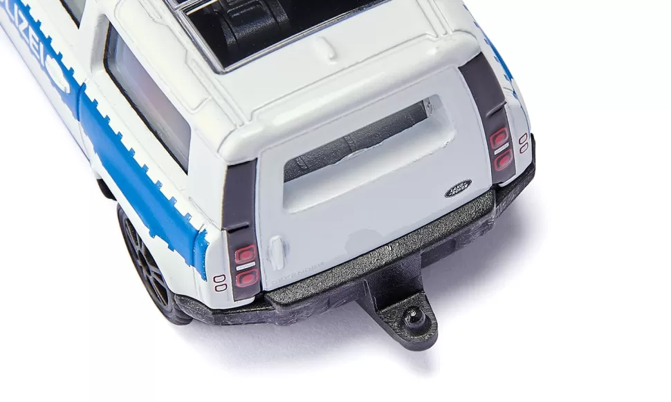 Auch Verdächtige und Grenzgänger im Kinderzimmer haben kaum eine Chance, ihm zu entkommen: Die robuste Metallkarosserie und das Kunststoff-Fahrgestell halten selbst größeren Hindernissen stand, wenn der Land Rover im weiß-blauen Bundespolizei-Design auf seinen sportlichen Felgen mit gummierter Lauffläche zur Verfolgung ansetzt.