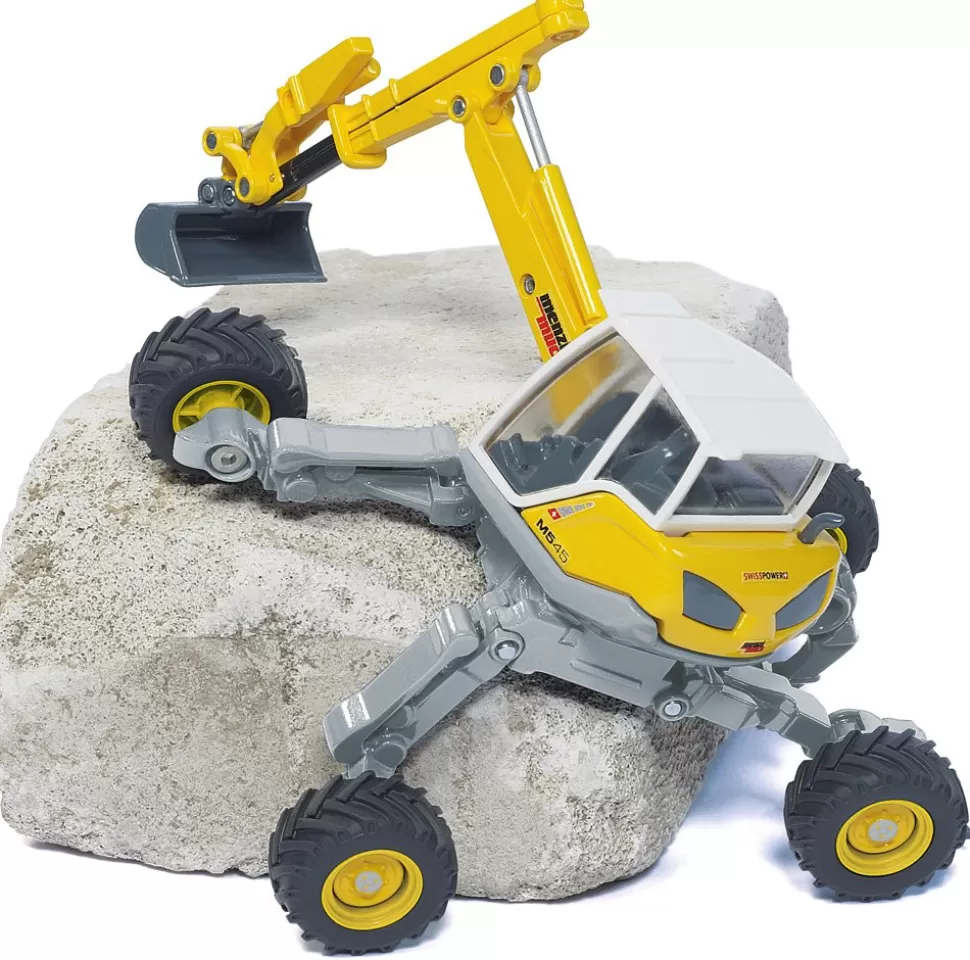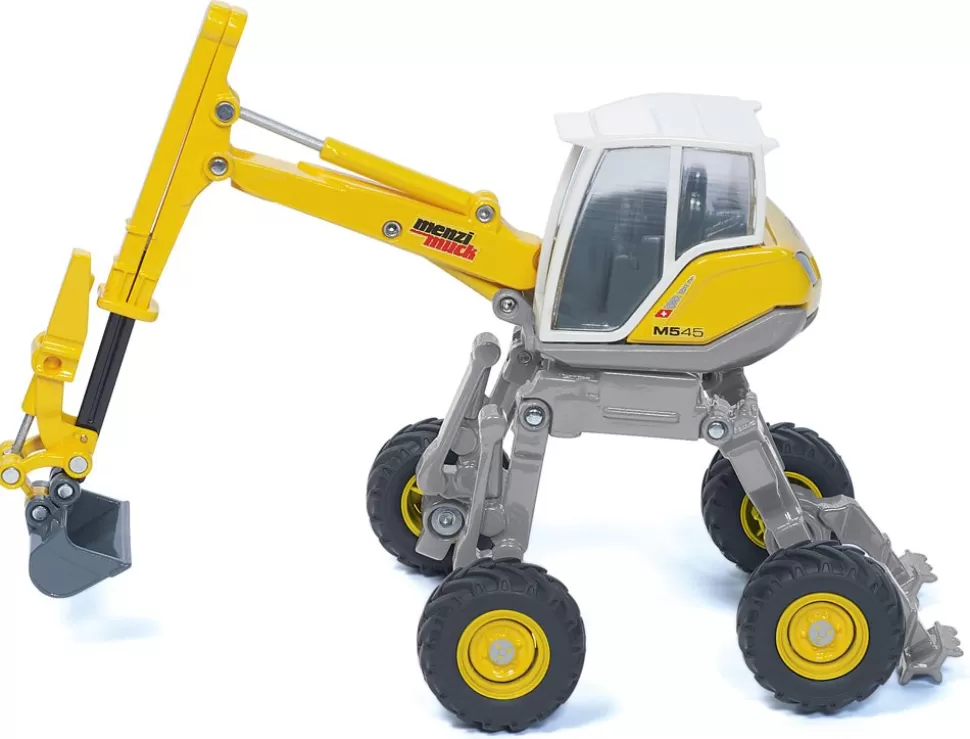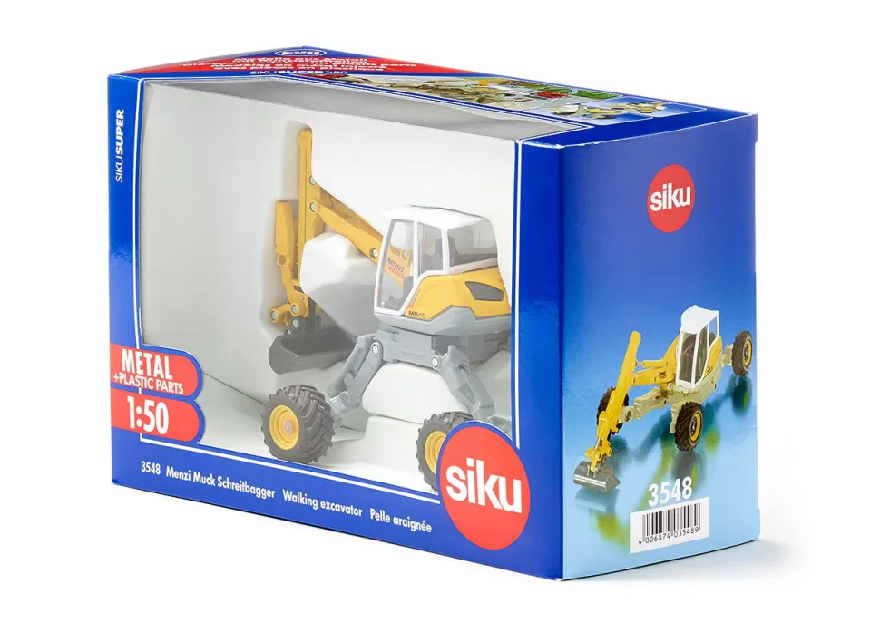 Der Schreitbagger der Schweizer Firma Menzi-Muck ist eine Baumaschine für Einsätze auf extremen Baustellen. Für Baggerarbeiten an großen Schrägen, Steilhängen und Gebirgen sowie unwegsamen Flächen ist der Menzi Muck die erste Wahl. Das wie Krakenarme verstellbare Fahrwerk findet auch in extremem Gelände halt. Der mehrfach bewegliche Baggerarm ist zusätzlich teleskopierbar und mit dem um 360 Grad drehbaren Oberwagen verbunden. Das weitgehend aus Metall gefertigte Modell ist in der typischen Menzi-Muck Farbgestaltung lackiert.