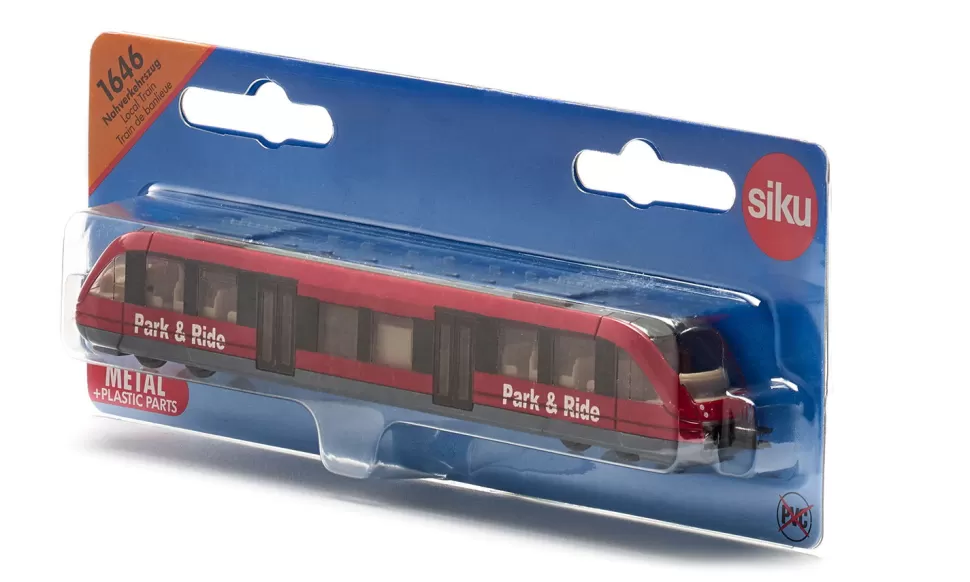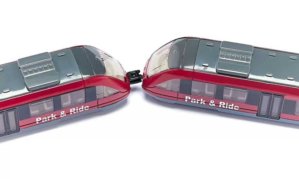 Umsteigen auf öffentliche Verkehrsmittel ist nun auch für SIKU-Kid’s und Sammler kein Problem mehr, denn mit dem Nahverkehrszug wird nun auch die Bahn in den Spielkreislauf mit einbezogen. Eine Besonderheit dieses sehr detailliert ausgeführten Metall-Modells sind die Kupplungen an Front und Heck. Diese ermöglichen das koppeln von mehreren Triebwagen zu einem beliebig langen Zug.