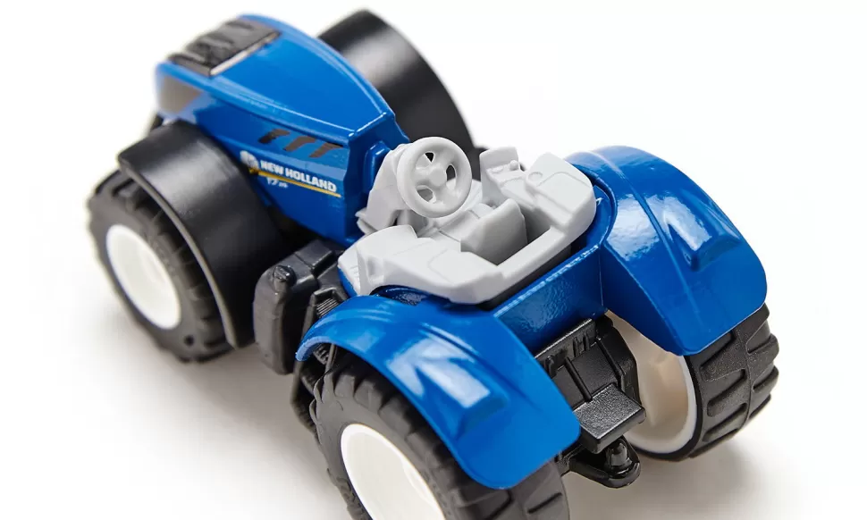 Blue Power auf dem AckerBreit, bullig und blau: Der Traktor New Holland T7.315 ist eine imposante Erscheinung. Das Topmodell der T-Baureihe von New Holland leistet stattliche 313 PS. Der Heavy-Duty-Traktor macht zudem mit den Rädern mit gummierten Reifen und dem grobstolligen Profil auch im Kinderzimmer mächtig Eindruck. Die abnehmbare Kabine und die Anhängerkupplung versprechen viel Spielspaß und Abwechslung bei den Feld- und Ackerarbeiten.