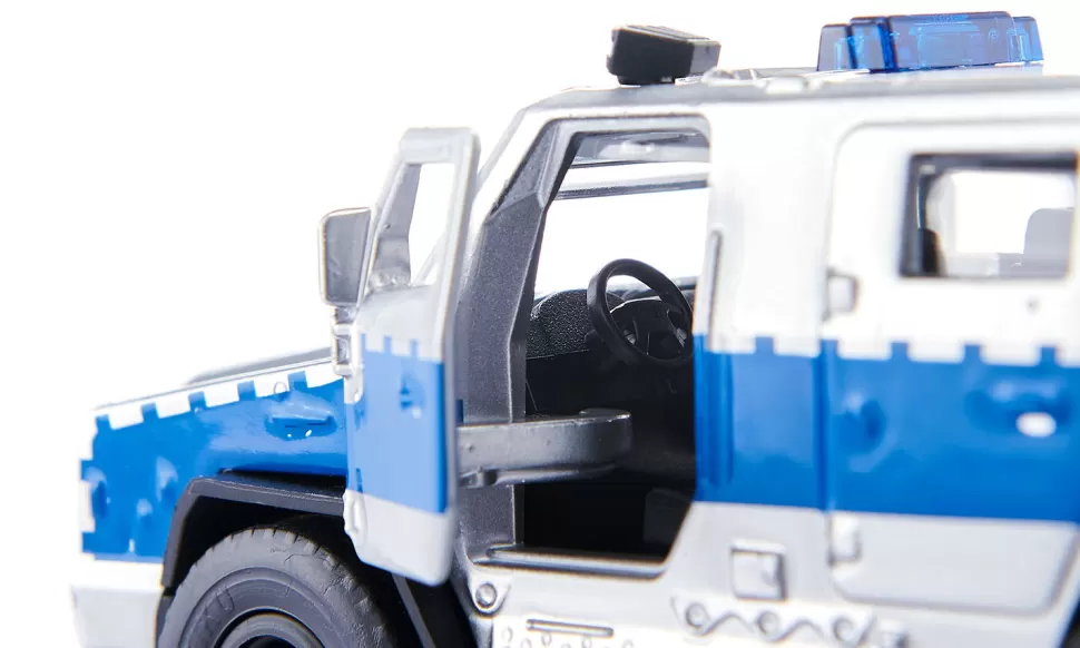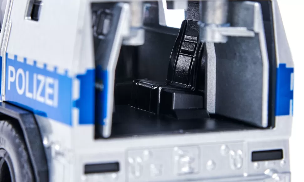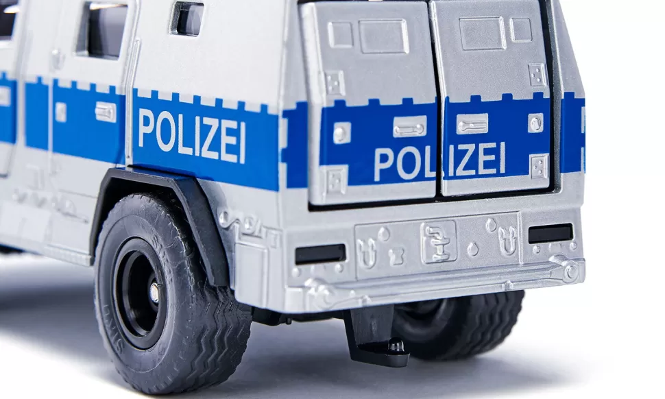 Einsatzfahrzeug für Spezialkräfte – Der Name ist Programm. Der Rheinmetall Survivor R transportiert Spezialkräfte an den Einsatzort. Bis zu elf Personen finden in dem gepanzerten Fahrzeug auf Lkw-Basis mit Ausrüstung Platz. Die Insassen sind mit einer speziellen Belüftungsanlage gegen Kampfstoffe geschützt. Der nächste Einsatz steht an. Die Türen und die Heckklappe lassen sich öffnen.