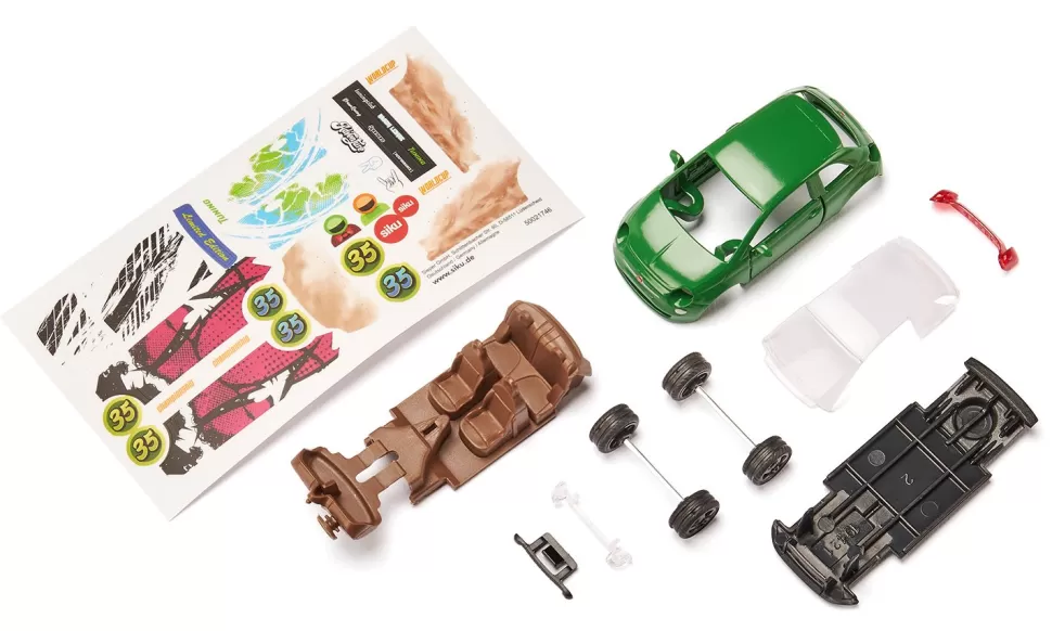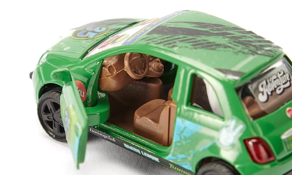 Klein, rundlich und mit freundlichen Scheinwerfern, das ist der Fiat 500! Sein typisch knuffiges Design macht den Kleinwagen aus Italien auch hierzulande zu einem Liebling. Der Fiat 500 steht für Dolce Vita, bringt einen Hauch italienisches Flair auch auf deutsche Straßen und hat daher eine große Fangemeinde. Erst recht als „Adventure“-Bastelmodell von siku! Denn mit einer Vielzahl an beigelegten Stickern kann man ihn individuell verzieren und das grüne Fahrzeugmodell so mit Startnummern, Streifen, Monsterzähnen und Camouflage-Motiven in einen farbenfrohen Abenteurer verwandeln. Der Spaß beginnt bereits beim Zusammenbauen, denn das Set mit Metallkarosserie und Türen zum Öffnen wird in Teilen geliefert, die sich ganz einfach zusammenfügen lassen.