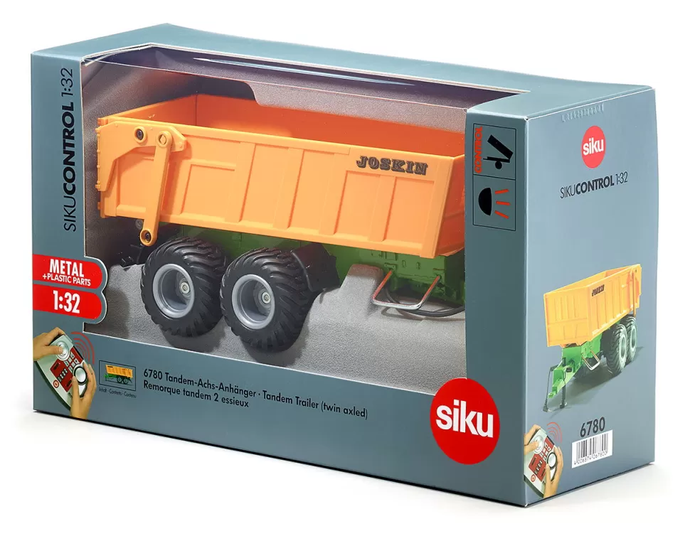 Elektronisch gesteuerten Tandem-Achs-Anhänger. Die Mulde des Anhängers ist elektronisch nach hinten kippbar. Hierzu kann das bereits vorhandene Fernsteuermodul genutzt werden. Im Heckbereich des Anhängers sorgen rote und orangene LED´s für Rücklicht und Blinker. Dieser Artikel wird über ein mitgeliefertes Datenkabel vom Anhänger zum Traktor mit Energie versorgt. Ein weiterer Akku mit Ladegerät wird für den Spielbetrieb nicht benötigt. Bitte beachten: Die Modellvariante ohne eigene Stromversorgung ist erst seit Januar 2012 erhältlich. Sollten Sie über eine ältere Version des Modells verfügen, so besitzt dieses noch eine eigene Stromversorgung. Neben dem Akku Art. 6702 (im Lieferumfang enthalten) wird in diesem Fall noch das Ladegerät Art. 6706 (nicht im Lieferumfang enthalten) für den Spielbetrieb benötigt!