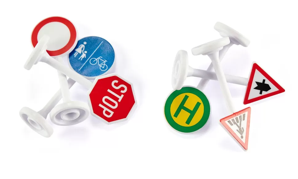 Zu einem realistischen Spielgefühl gehören auch authentische Verkehrzeichen. Daher können Sie mit diesem Verkehrszeichen-Set Ihre siku Spielwelten vervollständigen. Dank des robusten und gleichzeitig flexiblen Kunststoffes ist auch ein „Umknicken“ möglich, ohne dass die Schilder beschädigt werden.