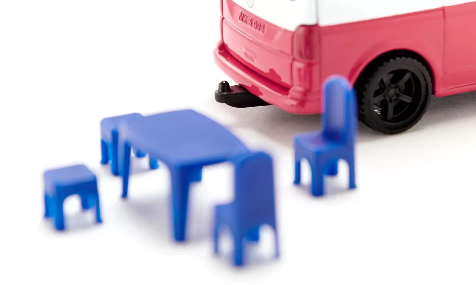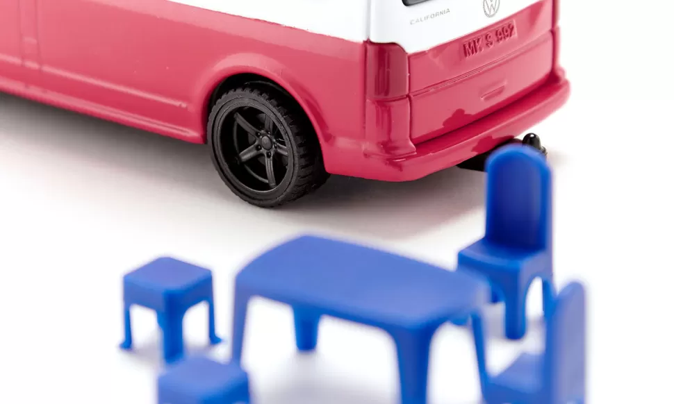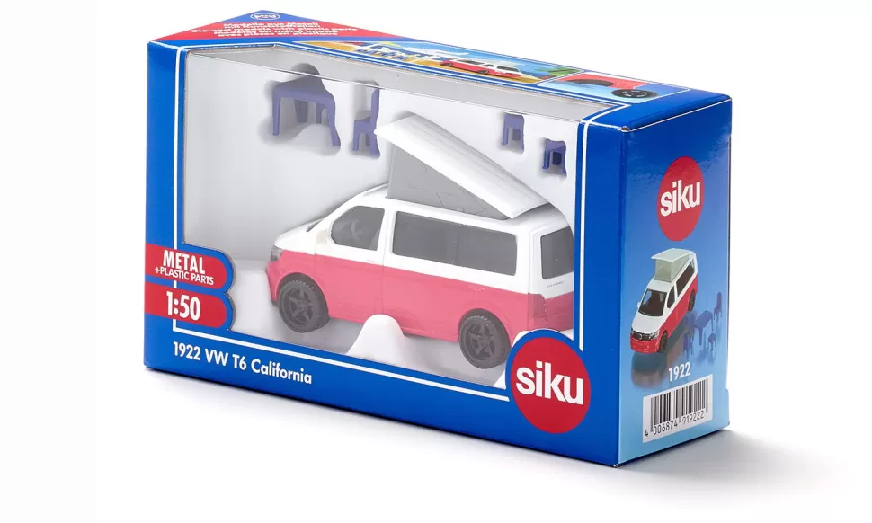 Freiheit auf vier RädernUnter dem Sternehimmel einschlafen, vom Meeresrauschen geweckt werden – und das ganz bequem im eigenen Auto. Dafür steht seit nunmehr 30 Jahren der VW California. Der Camping-Bulli ist bequem für lange Strecken, kompakt genug für Stadt- und Berg-Exkursionen und unabhängig genug, um damit überall zu campen. Dach hochklappen, Heckklappe auf, Tisch, Stühle und Hocker aufstellen – und die Freiheit genießen. Siku liefert das Kult-Reisemobil in trendiger zweifarbiger Lackierung und mit einer Anhängerkupplung, außerdem können die Räder abgenommen werden.