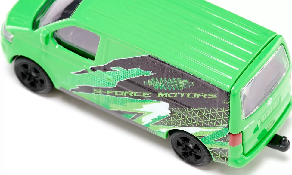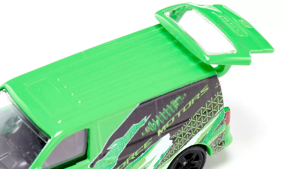 Die originalgetreuen Felgen mit gummierter Lauffläche, präzise eingesetzte Kunststoffscheinwerferleiste vorne und die imposante große Heckklappe machen dieses Fahrzeug zu einem absoluten Highlight. Das T5-Modell ist zudem mit einer Anhängerkupplung ausgestattet, was seine Vielseitigkeit und Einsatzmöglichkeiten noch weiter steigert.