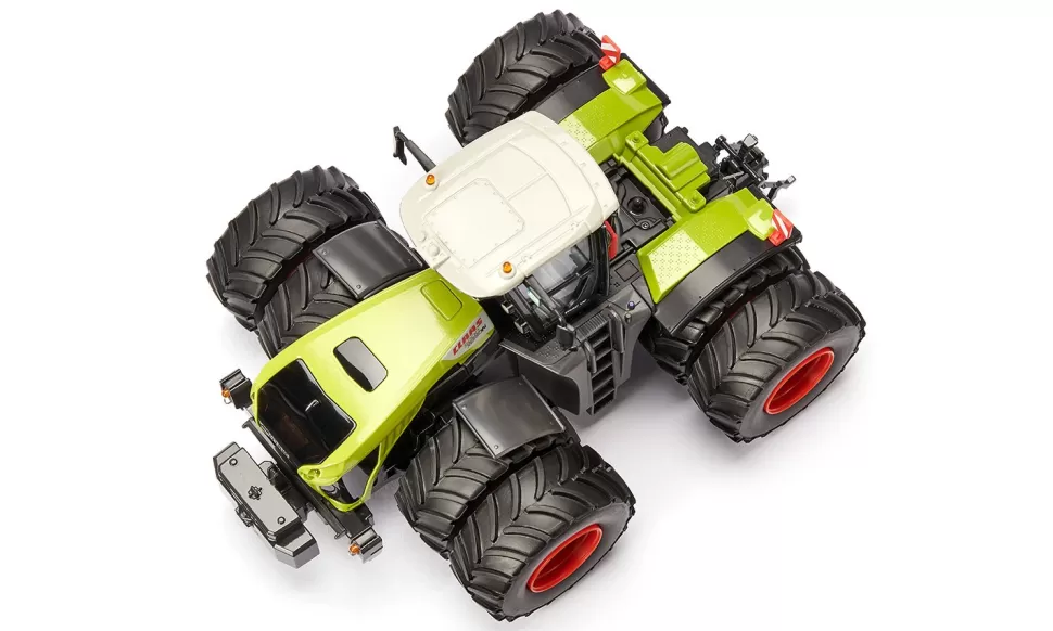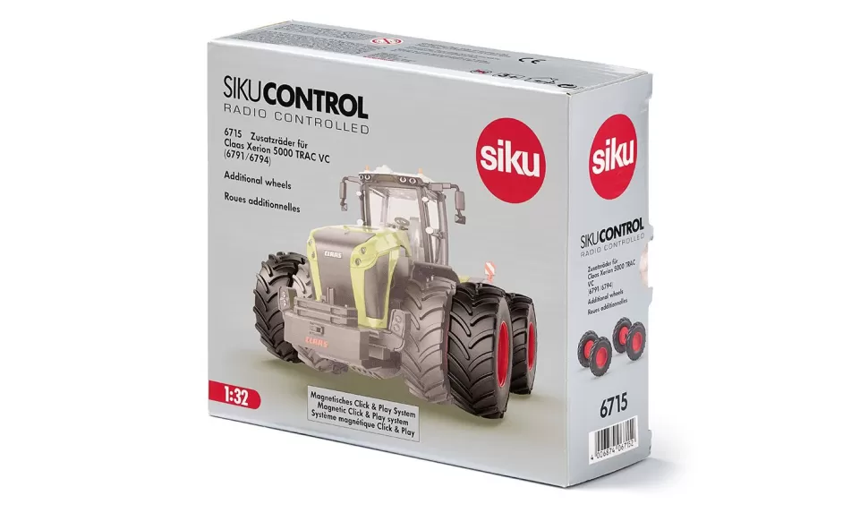 Der Claas Xerion ist eine beeindruckende Erscheinung – erst recht mit Zwillingsrädern! Denn damit erhält er eine extrabreite Spur und wirkt besonders voluminös. Auf dem Acker oder Feld verteilt sich durch die Doppelbereifung die Radlast besser, so dass die Bodenbelastung gemindert und gleichzeitig die Zugkraft erhöht wird. Mit vier zusätzlichen Rädern kann der Claas Xerion von siku Control jetzt im Handumdrehen auf Zwillingsreifen umgerüstet werden. Die Zusatzräder mit eingearbeiteten Magneten lassen sich ganz einfach auf die vorhandenen Räder aufstecken – es ist keinerlei zusätzliches Montage-Werkzeug nötig! Somit verwandeln die Zusatzräder den Claas Xerion kinderleicht und mühelos in einen imposanten Traktor mit Doppelbereifung. Die Zusatzräder können für alle Claas Xerion mit den Artikelnummern #6791 und #6794 genutzt werden.